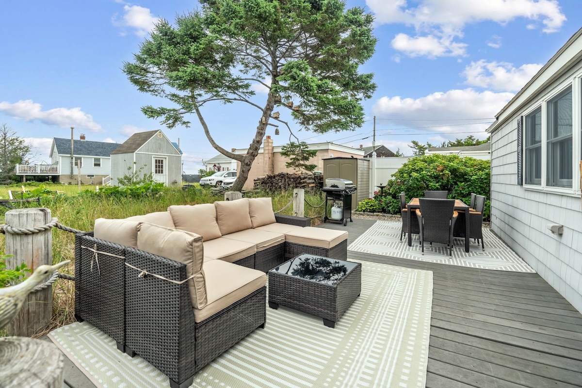 Fáilte chuig Tearmann Cladaigh - teach iontach 2 leaba, 1.5 seomra folctha atá suite ar an gcuid thuaidh d'Oileán Plum, tá an trá 1/2 bhloc suas an bóthar. Tóg isteach na gréine agus na héirí gréine iontacha ón deic agus ón bpóirse atá timpeallaithe ag an bhfarraige! Tar éis lá fada ag an trá, lig do scíth níos mó fós sa chlós tosaigh timpeallaithe sa ghairdín. Is tiomáint 10 nóiméad é Downtown Newburyport, a bhfuil cáil air mar gheall ar bhia, siopaí agus stair farraige dochreidte!