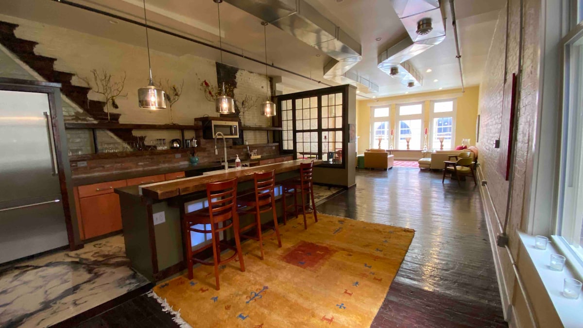 Samhlaigh go bhfuil an ghrian ag taitneamh trí dhá fhuinneog ghloine dhaite scéal inár séipéal nua - athchóirithe sa bhliain 1800 a d'iompaigh árasán sómasach! Tá plean urláir dhá scéal oscailte ina bhfuil dhá sheomra leapa mhóra, dhá sheomra folctha iomlána, cistin ina bhfuil stoc iomlán, beár caife orgánach agus níos mó suite ar shráid chónaithe chrainn i gceann de na comharsanachtaí is mó atá ag teacht chun cinn in Pittsburgh. Siúl cúpla bloc chuig ospidéal Ginearálta Allegheny chomh maith le beáir chomharsanachta +gach staidiam mór. Tá gach rud ag an condo iontach seo!