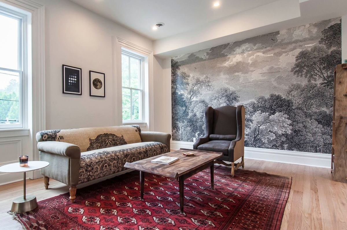 Teach Vista Stairiúil Eicléictiúil Grianmhar le Radhairc na Cathrach