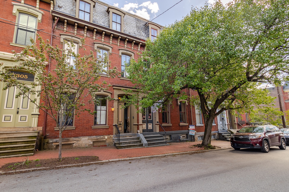 Seo áit chiúin cheilte. Cuir an t - árasán in áirithe, agus cuir béile breá in áirithe ag bialann in aice láimhe, agus siúil chuig an bpáirc in aice láimhe. Ar phraghas seomra óstáin, faigheann tú seomraí maireachtála agus gréine, cistin iomlán ina bhfuil páirceáil, níochán, iarnáil agus rochtain den scoth ar an idirlíon. Tá tú gar do cheolchoirmeacha, páirceanna, músaeim, staideanna, AGH, agus bialanna breátha. Is ionad iontach é an t - árasán seo chun iniúchadh a dhéanamh ar lár an bhaile agus ar Northside Pittsburgh. Taitneoidh an pháirc mhór leat féin agus le do pheata, gan ach bloc 1/2 ar shiúl.