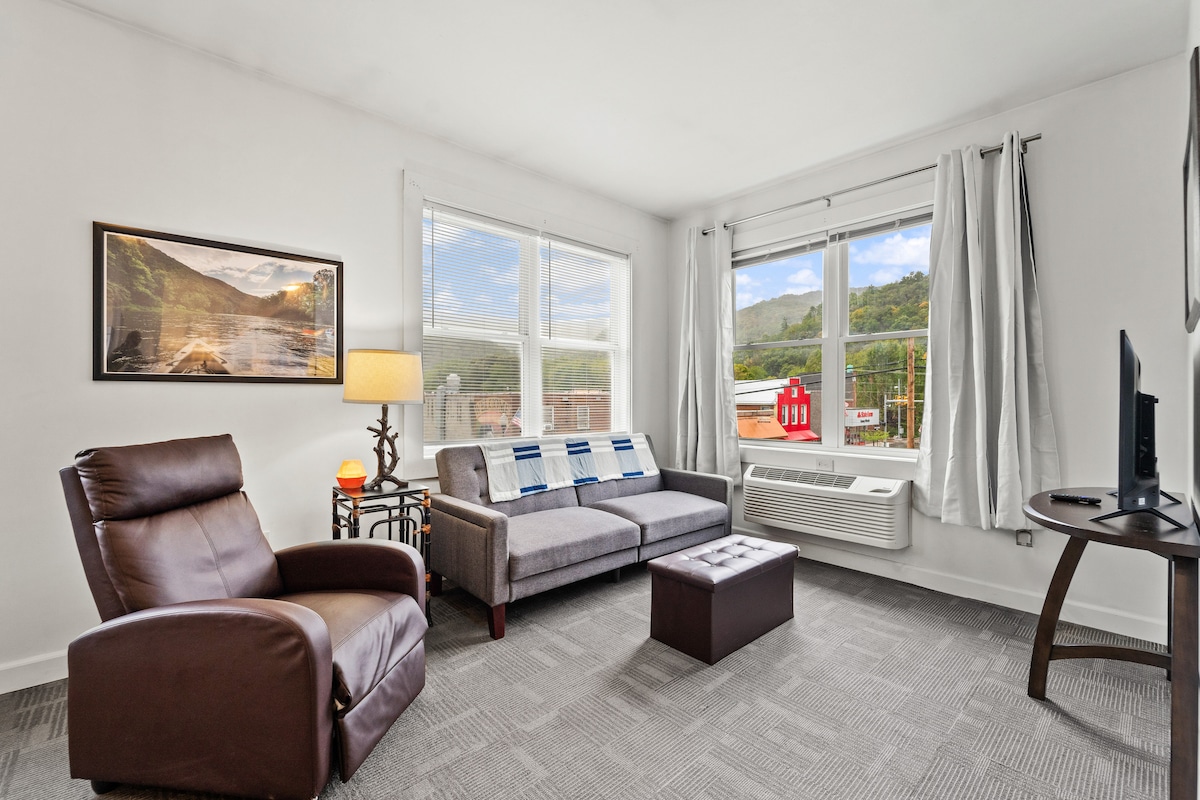 Lonnaithe go lárnach i gcroílár Chontae Pocahontas, WV, tá ár svuít d'aíonna foirfe do lánúin amháin nó don eachtránaí aonair. Lig do scíth. Athnuaigh. Déan athnascadh. Is bunáit iontach é do d'eachtraí sléibhe go léir. Bain sult as caife na maidine ar luascán an phóirse agus tú ag pleanáil gníomhaíochtaí an lae. Tá plean urláir oscailte ar fáil sa spás cluthar seo ina bhfuil cistin, leaba bhanríona, folcadán iomlán ina bhfuil cithfholcadán, áiteanna maireachtála/itheacháin. Agus tú ag cur draíocht thuathúil le saoráidí nua - aimseartha le chéile, tá tú cinnte go mbainfidh tú taitneamh as do shaoire chuig Teachín Lus na Gréine 🌻