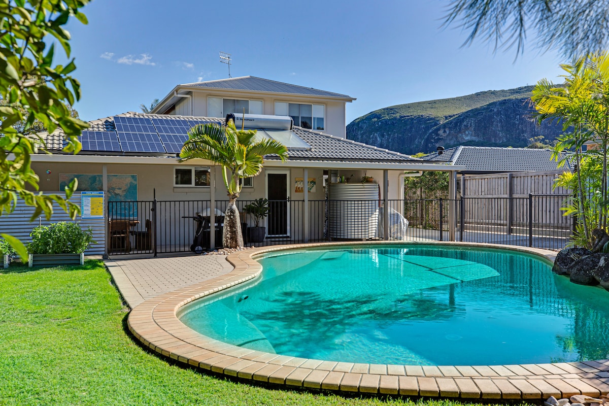 *Le feiceáil san iris Teach agus Gairdín agus glas na hAstráile, tá an teach saoire seo atá uathúil ó thaobh ailtireachta de agus atá suite ar cheann tíre álainn Caloundra. Tá linn maignéisiam, cúirt bocce, 2 theallach, chomh maith le folcadán & cithfholcadáin iontach lasmuigh ann. Tá na paillíní maireachtála agus codlata ar leith ceangailte le clóis le gairdíní méithe, rud a chruthaíonn atmaisféar suaimhneach cois cósta atá ina n - éalú ón lá go lá. Tá fáilte roimh pheataí ar iarratas. * Tá rátaí teaghlaigh speisialta ar fáil. Cuir teachtaireacht chugainn chun fiosrú a dhéanamh.