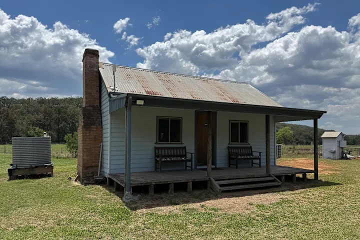 Cábán adhmaid leac rómánsúil 1 seomra leapa ag breathnú amach ar an Wollombi Brook agus ar chéasóga tuaithe. Lóistín féinfhreastail a thairiscint do lánúin ar imeall Shráidbhaile Wollombi. Is rogha mhóréilimh muid d'aíonna bainise le tiomáint 6 nóiméad go Redleaf, Mystwood agus Woodhouse agus 10 nóiméad go Stonehurst. Bunáit iontach chun iniúchadh a dhéanamh ar fhíonghoirt an Hunter, ag freastal ar cheolchoirmeacha, ag coimhéad nó díreach ag ligean do scíth agus ag breathnú ar na ba ag spaisteoireacht thart.
