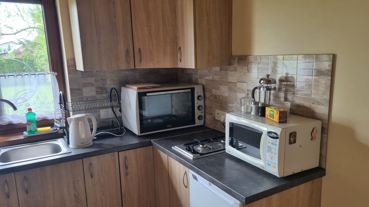 Árasán barántúil, galánta, fairsing (55m2) le síleálacha arda (3.70m), troscán seanda athchóirithe go hálainn, leaba rí - mhéid chompordach, troscán cistine saincheaptha le barr oibre marmair. A árasán fíor, ní óstán! Lonnaithe i dteach baile ón 19ú haois a bhfuil radharc uaidh i gcroílár Podgórze. 1 seomra leapa, seomra suí, WI - FI saor in aisce, teilifís satailíte cothrom 40", miasniteoir, cócaireán, oigheann, cuisneoir, iarann, meaisín níocháin, triomadóir gruaige. Fíor - theach ar shiúl ón mbaile! Taitneoidh sé go mór leat! Déanann ár n - aíonna!