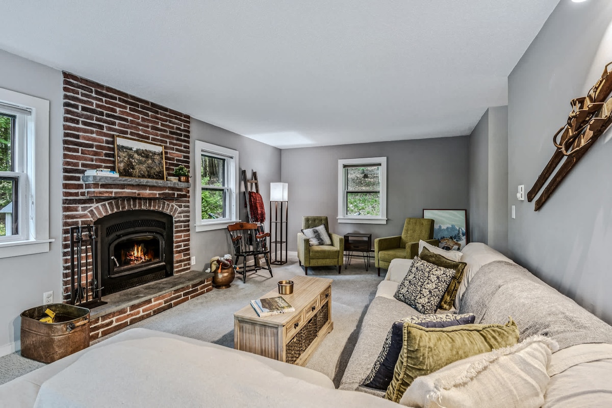 Cozy Cabin doesn’t charge an additional cleaning fee and offers a late 1pm checkout to our guests! We focus on a comfortable, relaxed, Vermont experience. If you’re looking for a peaceful, yet accessible location, we are situated on 15 acres located between Woodstock Village & Killington. There’s fiber WiFi, Hulu with Starz, MAX, +Live TV w/local channels, ESPN+, Disney+. Also Amazon movies & music, Netflix & Peacock. The Rec Room has a pool table, darts, lounge, gym and a desk for remote work.