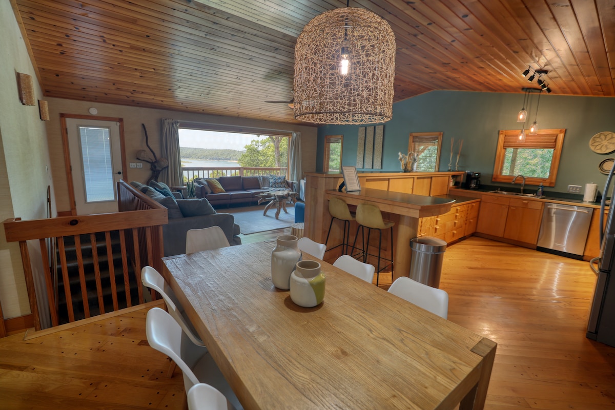 *Suaimhneach, deartha go síochánta 2500sq teach locha *4 sheomra leapa/3 sheomra folctha iomlána/8 leaba/áit chodlata do 13 dhuine * Tobán te tosaigh uisce *Bain sult as breathnú ar fhiadhúlra ó na deiceanna cúil uachtair nó íochtair * Cistin lánstóráilte *4 theilifíseán chliste *Wi - Fi * Meaisín níocháin agus triomadóir lánmhéide *Garáiste le cabhsa le neart páirceála *3 kayaks w seaicéid tarrthála *Ar éileamh uisce te * HVAC Fall nua 2023 * Deic chúl mór le tábla lasmuigh, gríoscán gáis, greille *Inis dúinn cad a d'fhéadfaimis a chur leis chun d'fhanacht amach anseo a fheabhsú