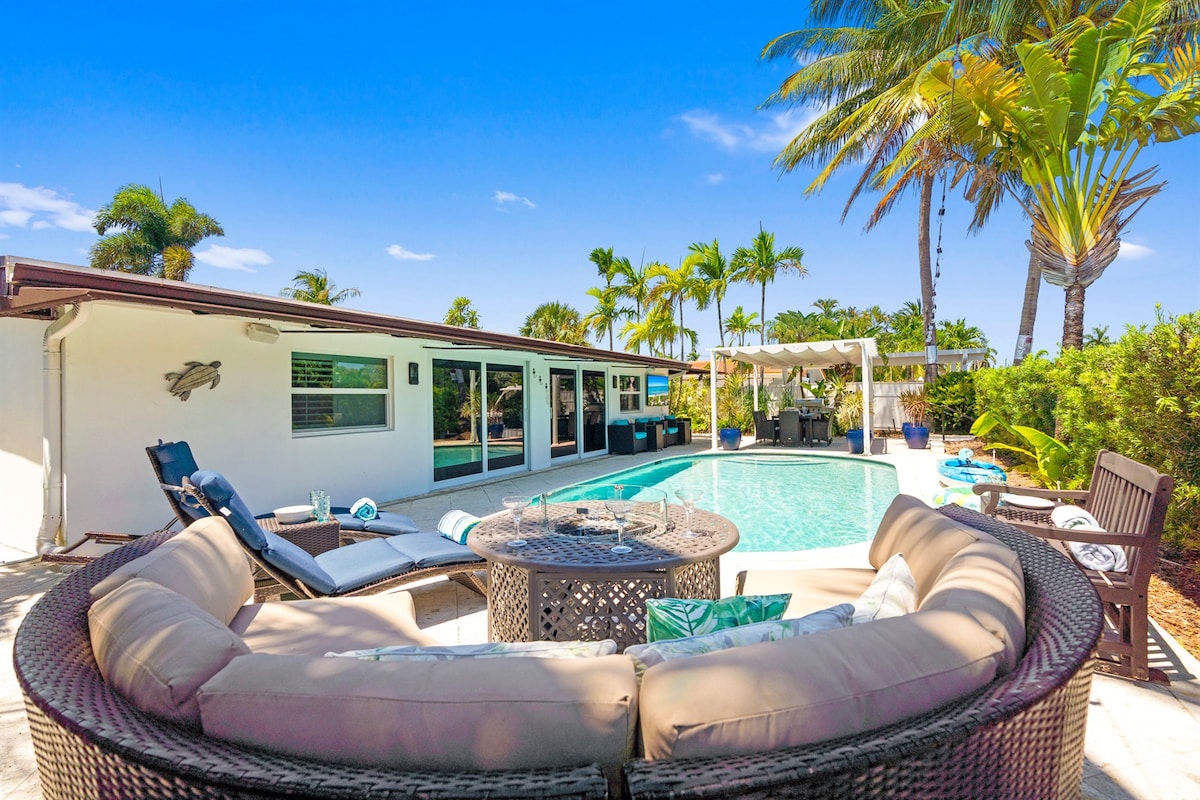 🌴Welcome to your canal-front retreat! Have some fun in the pool with the family, or enjoy some drinks in the hot tub and built in new wet bar. 🍹Our outdoor seating area has a TV 📺—perfect to watch your favorite Team play or for family movie night. 🍔🔥Relax under the gazebo with BBQ area, 💪🏋️♀️or work out in the outdoor gym. 🛌Comfortable bedrooms and two renovated bathrooms ensure a great stay. Just minutes from Pompano Beach’s beautiful shores and dining! 🏖️