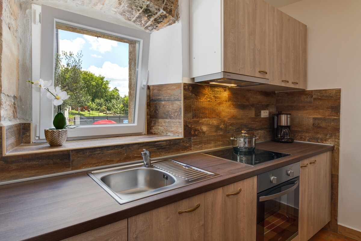 Tá an teach cloiche suite 3 chiliméadar ar shiúl ó Svetvincenat. Tá 2000m2 dá gcuid féin ag aíonna, cistin laistigh agus cistin samhraidh, teallach, tobán suathaireachta sa chlós tosaigh le cosaint ar an ngrian, sauna infridhearg agus cathaoireacha comhluadair agus suíocháin le haghaidh scíthe. Tá 2 rothar ar fáil freisin. Tá an teach feistithe le fearais tí nua-aimseartha (Kitchenaid, meaisín caife De longhi le capsúil, cuisneoir Meiriceánach..). Tá an margadh 100 méadar ar shiúl.