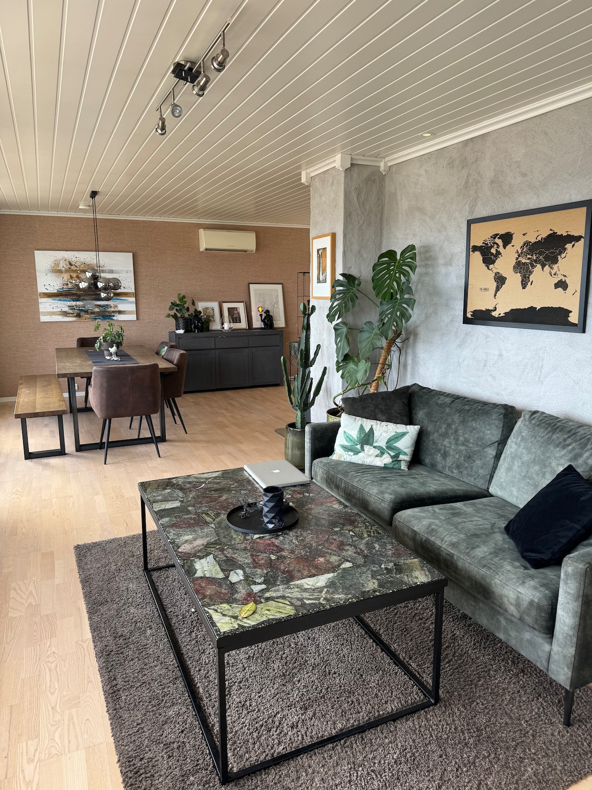Tá teach nua de 211 cearnach ar cíos ar chomhaontú. 100m go dtí an trá agus an lamairne "príobháideach" nó 400m go dtí limistéar snámha Mulevarde agus 2km go Olavsberget. Póirse mór faoi throscán le dálaí gréine an - mhaith. 2.5 seomra folctha, 2 sheomra leapa + seomra suí lochta agus is féidir spás codlata más gá. Seomra suí mór le teilifís 65 orlach. Cistin nua - aimseartha dea - fheistithe agus seomra mór níocháin. Clós mór le carport, luchtaire gluaisteán leictreach, spás do 5 charr. Giomnáisiam iontach sa gharáiste. Bréagáin agus trealamh do pháistí más gá. Garáiste do dhaoine nach bhfuil ann agus Conair Chósta