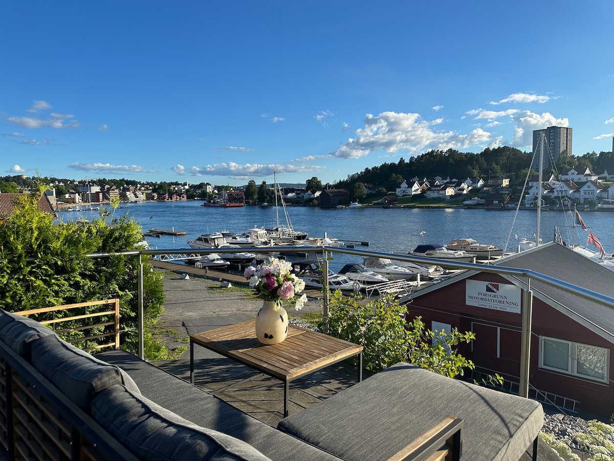 Lóistíní ar cíos ag a bhfuil suíocháin lasmuigh atá molta go hard in Porsgrunn