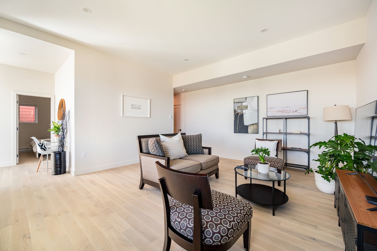 Is breá le haíonna ár dteach atá sa 5% is fearr: glan lonrach, dea-dheartha agus thar a bheith compordach. Svuít i stíl boutique le síleálacha arda, leaba rí sómasach agus compord níos fearr ná fanacht in óstán. Bain sult as seomra suí grianmhar, seomra níocháin en suite, Wi-Fi 1G, teilifíseán cliste 52" ar a bhfuil Netflix, caife agus tae saor in aisce, bealach isteach príobháideach agus páirceáil saor in aisce. Téamh teirmeastait agus fuar go nádúrtha sa samhradh. Siúil go dtí an t-iompar poiblí, páirceanna agus cosáin; turas gairid sa charr go dtí áiteanna siopadóireachta. Foirfe do lánúineacha, do theaghlaigh, do dhaoine atá ina n-aonar nó do thréimhsí fanachta gnó.