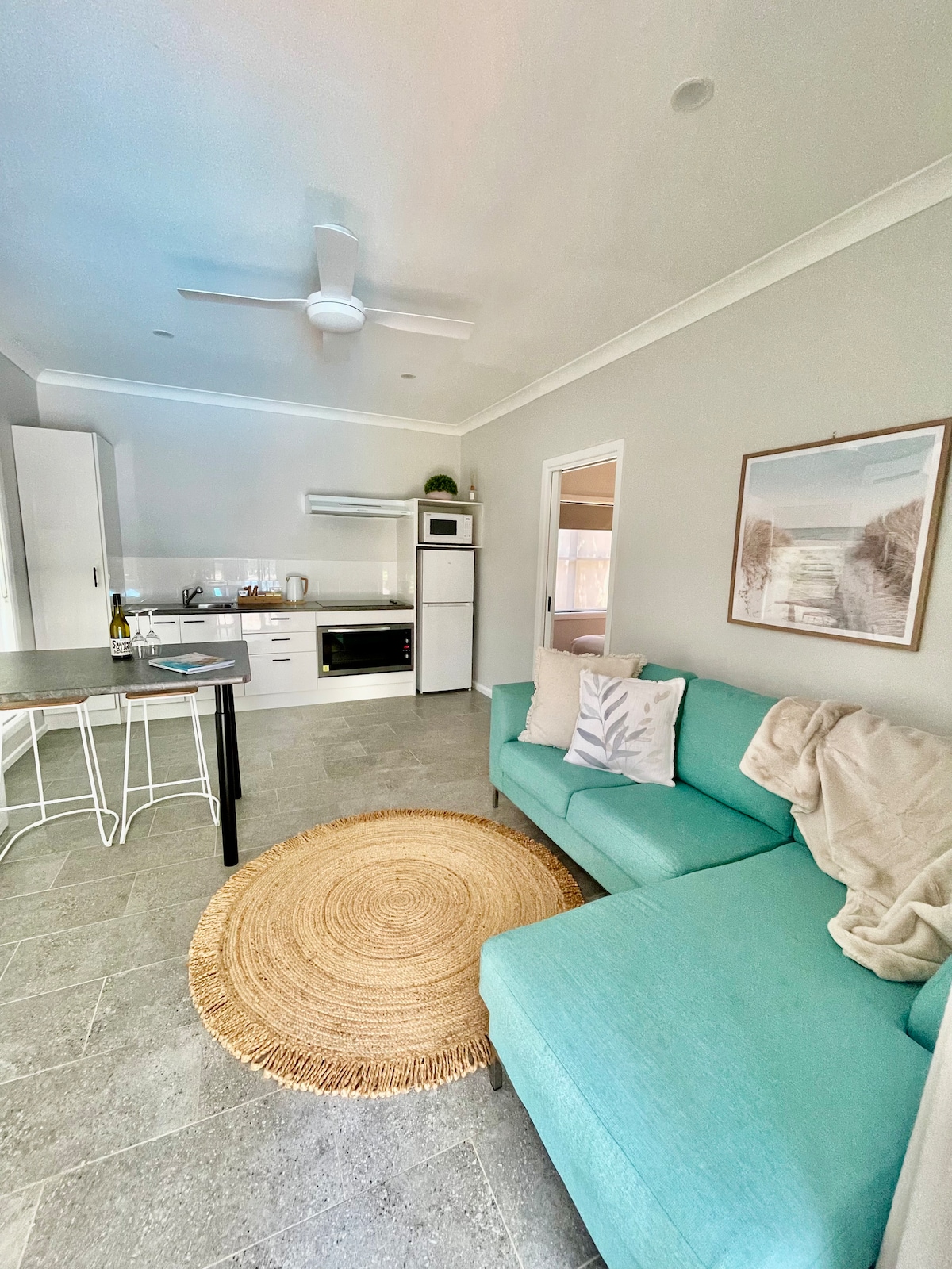 Tá an stiúideo féinchuimsithe seo atá athchóirithe le déanaí atá oiriúnach do pheataí suite faoi theach ina bhfuil bealach isteach, garáiste agus cabhsa ar leith. Tá gach rud a theastaíonn uait ann chun taitneamh a bhaint as d'fhanacht cois cósta in Port Macquarie álainn. Tá sé suite go lárnach ar shráid chiúin agus níl ann ach siúlóid ghearr chuig siopaí, teach tábhairne, clós súgartha/páirc agus tá sé 5 nóiméad sa charr go lár an bhaile agus Trá an Bhaile.