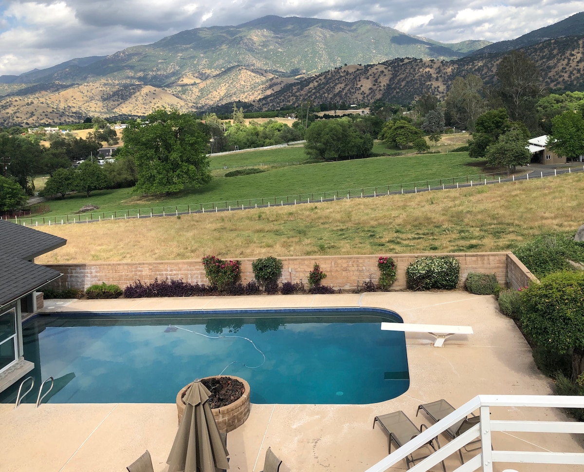 Peaceful, Pool, Natl Parks! A single level home in the most enchanting town in the valley. Sequoia south entrance only 28 miles away. Visit Lake Kaweah, Three Rivers & Kings Canyon National Park & Big Stump Trail Loop. Peaceful garden, covered patio and pool. A fully equipped kitchen: everything from a waffle maker to a French Press. Smart TV & stars in the sky at night. Supermarkets, Vintage shops, our favorite cookie shop, coffee spot, Mexican and French restaurants all 5 minutes away!