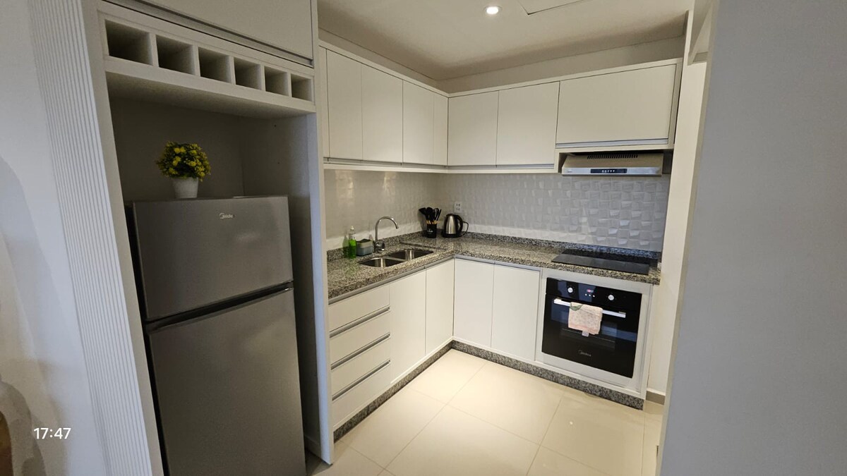 Árasán le balcóin ag breathnú amach ar an abhainn agus suíomh den scoth📍!. Siúil go dtí an Costanera, Playa San Jose🏖️, bialanna🍴 agus Siopadóireacht Costanera🛍️. Príomhsheomra le leaba dhúbailte🛏️, seomra suí le leaba thoilg (2.10 x 0.95 x 0.92), seomra bia🛋️, cistin chomhtháite agus seomra folctha nua - aimseartha 🚿 Seirbhís slándála 🔒 agus níocháin 24/7 taobh istigh den fhoirgneamh mar áis duit. Aires Splits sa seomra agus sa seomra bia.
