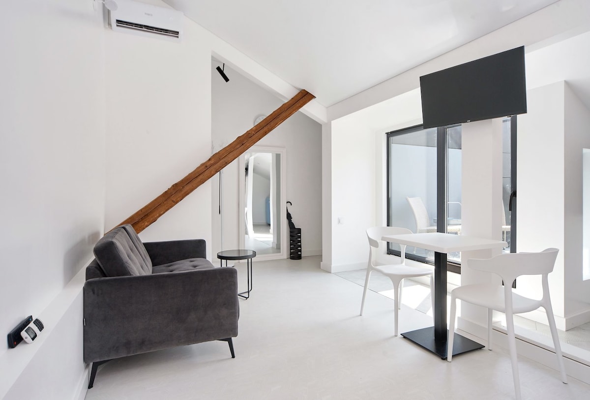 A stylish apartment in the center, designed in Scandinavian style with vintage furniture and modern art. It is located a 15-minute walk from the beach and 10 minutes from the central park, surrounded by many restaurants and bars. A pre-revolutionary building with a cozy Odessa courtyard. The apartment features a separate bedroom with a double bed and a comfortable sofa bed in the living room. The apartment is fully equipped with everything you need.
