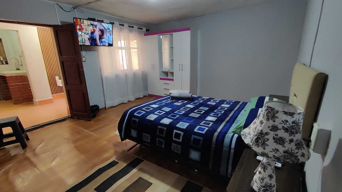Árasán álainn neamhspleách mono - ilchríochach atá suite i lár stairiúil Tarija, 3 bhloc ón margadh lárnach agus 7 mbloc ón bpríomhchearnóg. Tá gach rud atá uait an - ghar duit, mar shampla an margadh lárnach, cógaslann, siopa comharsanachta, bialanna, gach rud is féidir leat a dhéanamh ag siúl. tá leaba dhúbailte, seomra bia, seomra folctha mór, a ardán féin ar urlár uachtarach le bord agus cathaoireacha ann chun taitneamh a bhaint as an taobh amuigh