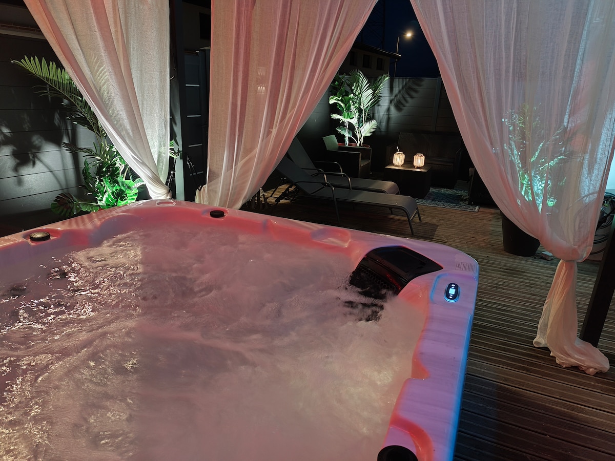 Tar agus bain sult as eispéireas suaimhneach inár n - árasán gleoite atá lonnaithe in Frouzins i réigiún Toulouse. Lig do scíth agus tú ag baint suaimhneas as an árasán, a jacuzzi ag bun na leapa, ardán lena radharc iontach ar na Piréiní. Chun an compord is fearr a fháil, tá an t - árasán aerchóirithe agus bainfidh tú leas as dhá spás páirceála. Fanfaidh fearas tosaithe le braillíní, caife, tae, tuáille, spúinse, srl. ionas nach mbeidh ort a bheith buartha faoi rud ar bith.