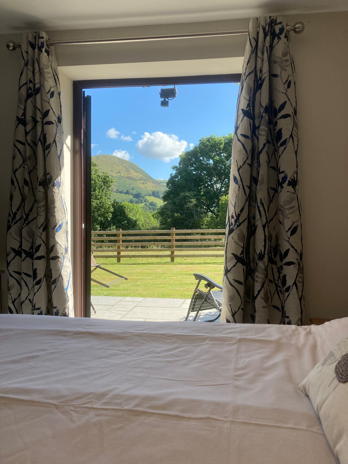 Réadmhaoin mhealltach, féinchuimsitheach nua - aimseartha, foirfe le haghaidh fanacht compordach, compordach faoin tuath álainn sa Bhreatnach. Tá na seomraí éadrom agus aerach, le seomra suí déghnéasach. Is féidir radhairc ar na Sléibhte Dubha agus ar na Beacons Brecon a fheiceáil ón réadmhaoin agus ón 2 áit phaitió phríobháideacha. Tá an réadmhaoin laistigh de 8 míle ó Hay - on - Wye, 8 míle ó Brecon agus 12 mhíle ó Crickhowell, foirfe le haghaidh siúil, rothaíochta, curachóireachta, faoileoireachta, marcaíocht capall agus iniúchadh a dhéanamh ar na Sléibhte Dubha.