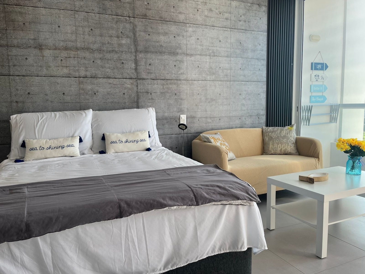 Bain sult as suaimhneas agus suaimhneas iomlán san árasán úrnua seo atá ag breathnú amach ar an anaclann dúlra agus ar an trá ag Pozos Colorados. ★★★★★ "... táan t - árasán iontach mar gheall ar a radharc álainn nó an fharraige agus luí na gréine..." ★★★★★ "... Suíomh den scoth... bialanna ach 5 nóiméad ar shiúl !!!" Taitneoidh an suíomh go mór leat: ✔ 300m ón trá ✔ 5 nóiméad sa charr ón aerfort Tiomáint ✔ 2 nóiméad ó ionad siopadóireachta Plaza Zazue. ✔ 25 nóiméad ó lár baile stairiúil Santa Marta.