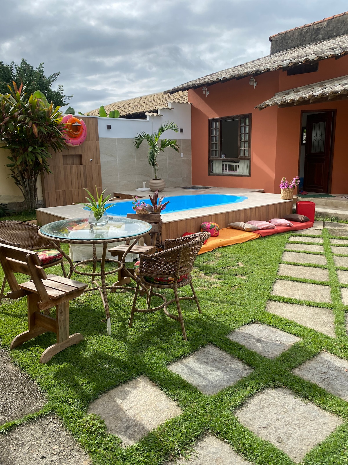 Casa agradável com piscina e churrasqueira.