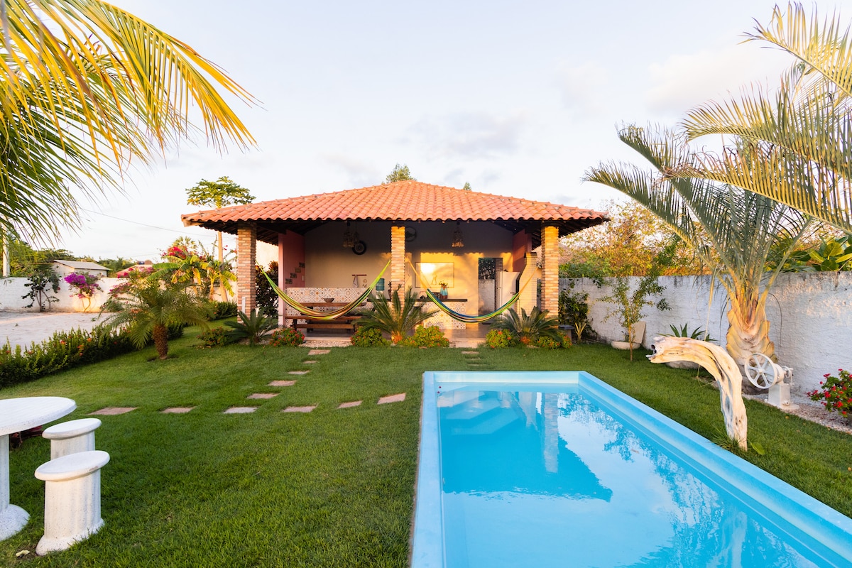Aconchego Dourado I: casa com piscina 17min praia