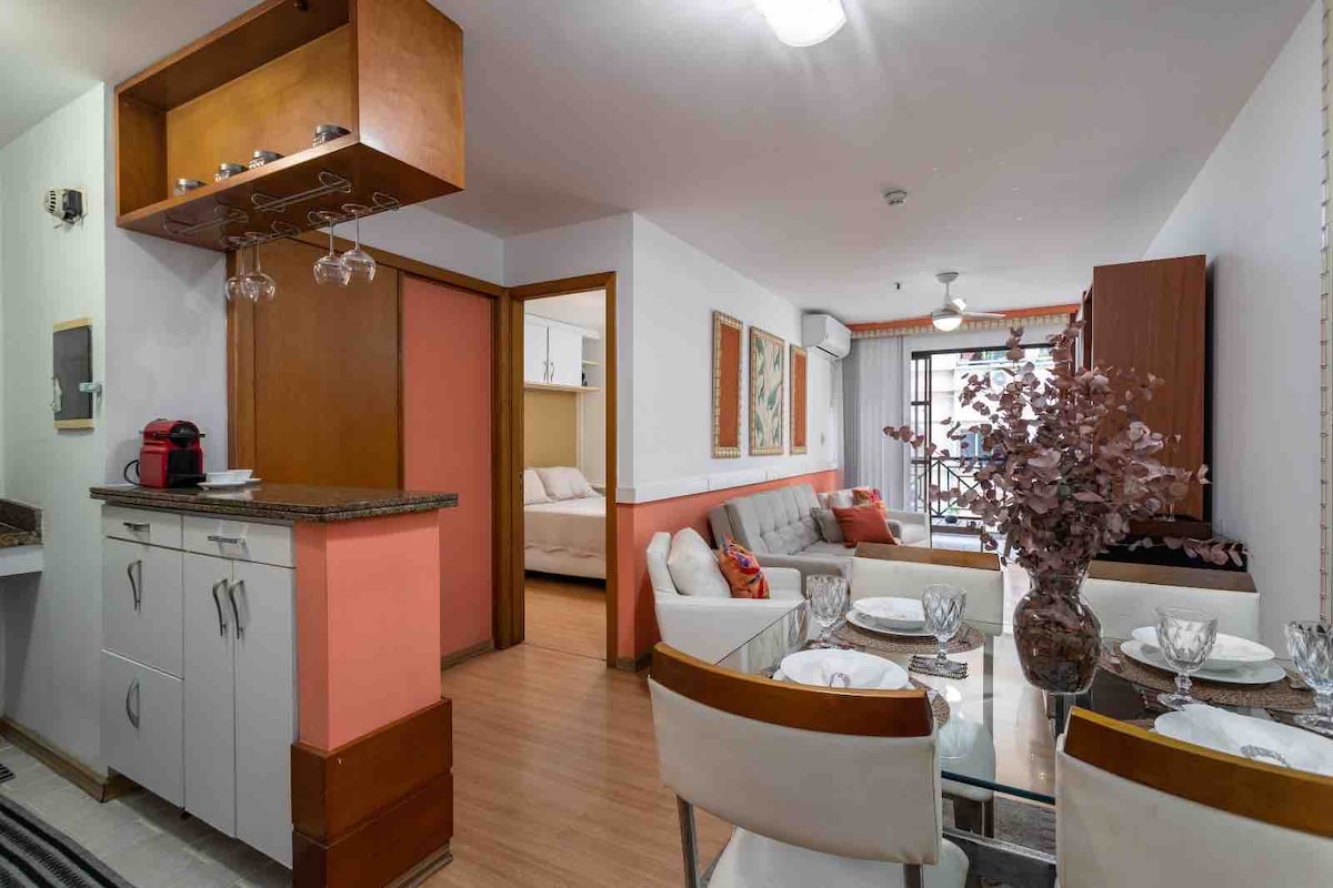 Cos ardleibhéil chónaithe sa ghaineamh, Barraca do Pepê, Classic Beach Club, K8 Kite Surf agus daoine eile. In aice le Rua Olegário Maciel, na beáir agus na bialanna is mó a bhfuil tóir orthu. Glanadh laethúil, cistin iomlán, leaba bhanríona sa seomra leapa agus tolg dúbailte sa seomra suí, seomra folctha agus leithreas. Árasán: sauna, linn snámha, hidrigin. Spás Áise agus Bistro 24 uair an chloig. Garáiste, luchtaire carranna leictreacha. Balcóin iontach le radharc Pedra da Gávea agus Trá. Is siúlóid 15 nóiméad é an fobhealach. Ollmhargadh agus cógaslann 2 bloic ar shiúl.
