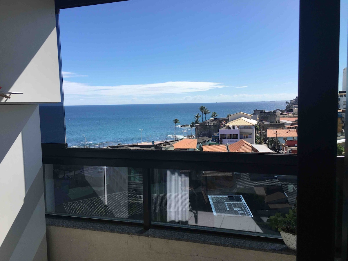 Bain sult as radhairc iontacha ar an bhfarraige i gcroílár Rio Vermelho, ceann de na ceantair is bríomhaire agus is cultúrtha in Salvador! Cuireann an t - árasán iomlán seo aerchóiriú, Wi - Fi tapa, cistin fheistithe, tolg compordach agus teilifíseán ar fáil. Foirfe do lánúineacha, do thurasóireacht nó do chianobair. In aice le himeall an uisce, beáir, bialanna, margaí agus eile. Laethanta dodhearmadta beo le compord, praiticiúlacht agus radharcra iontach!