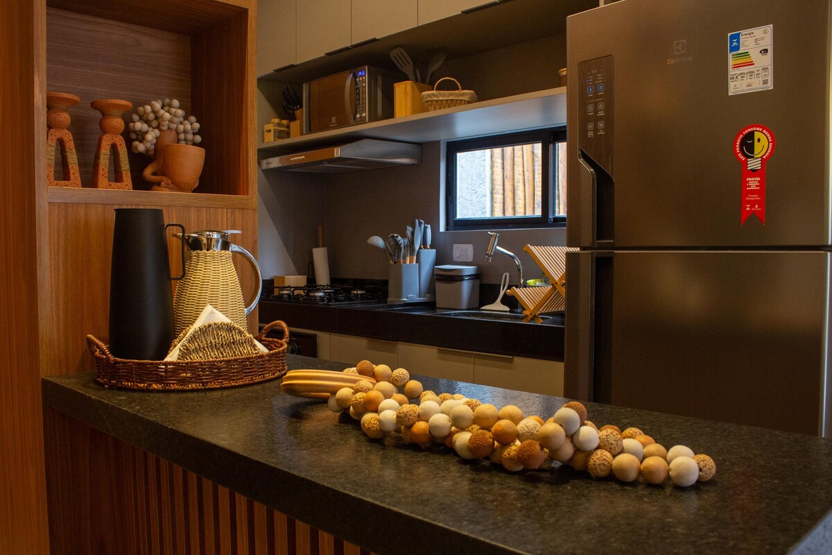 Saoire 🏝️ ghearr thuathúil fháilteach ghalánta, gan ach siúlóid 5 nóiméad ón Trá Toque cáiliúil in São Miguel dos Milagres – parthas ceilte ar chósta Alagoas. Timpeallaithe ag crainn cnó cócó, cuireann an bungaló eispéireas uathúil ar fáil: folcadán tuathúil lasmuigh, gairdín príobháideach agus compord uile leaba theolaí le bríste ardchaighdeáin. Foirfe do lánúineacha atá ag lorg scíthe, grá agus dúlra.
