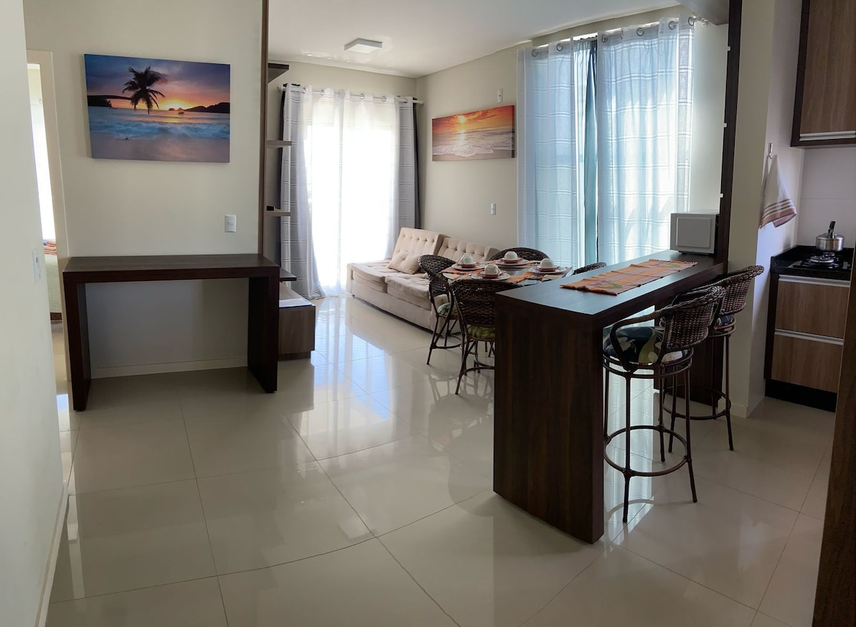 Lindo Apartamento com 2 suites + lavabo, moveis sob medida, equipado com ar condicionado nas 2 suítes e na sala, TV Smart, Wi-Fi, maquina lavar e secar, cozinha completa. Todos os cômodos são bem arejados. Garagem privativa. Ap é maravilhoso e completo!! Hospedes de todas as origens são bem vindos. Praia de Palmas - em Governador Celso Ramos - SC. Praia linda e limpa. Mar apropriado para o banho. O acesso a praia pode ser a pé. Praia muito cobiçada por moradores da região e por turistas.