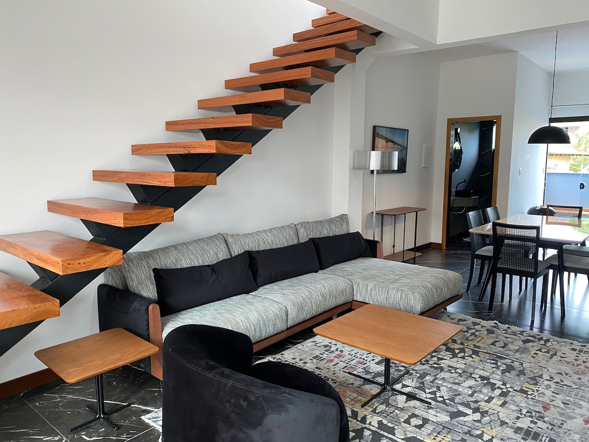 Tá svuít chluthar ar an mbunurlár mar chuid de theach aíochta Casa Aratuca, atá suite 200 méadar ó Praia Grande. Tá cistin mhór chomhchoiteann, beárbaiciú, linn snámha, cithfholcadán lasmuigh, comhghleacaí, seomra léitheoireachta agus cluichí sa teach. Tugann an réigiún compord agus suaimhneas, an - ghar do Prainha (10 nóiméad de shiúl na gcos) agus Enseada (15 nóiméad de shiúl na gcos), áit a bhfuil an spleodar is mó le surfáil cháiliúil Prainha, beáir, cóisirí, bialanna agus siopaí.