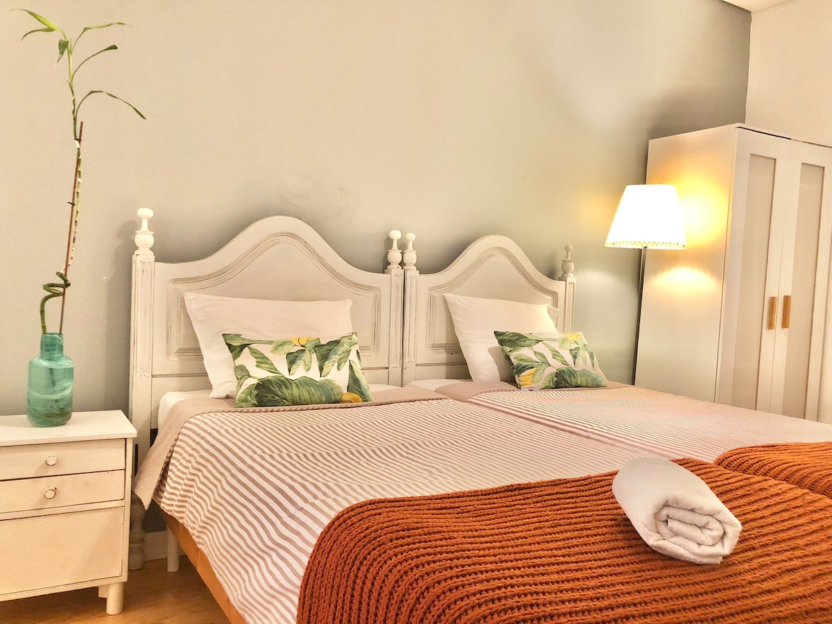 Seomra dúbailte lárnach i Liospóin ina bhfuil seomra folctha comhroinnte