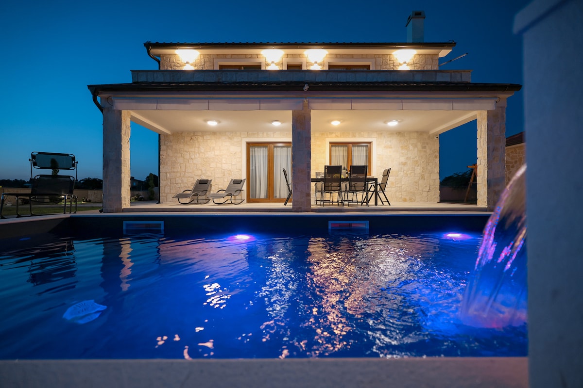 Fáilte go Villa Noel in Privlaka! Tá an villa galánta sómasach seo neadaithe i gceantar síochánta nach bhfuil ach 600m ó thrá ghainmheach. Nua - thógtha agus feistithe le fearais den scoth, tá sabhna, taobh istigh nua - aimseartha, agus páirceáil saor in aisce ann. Bain sult as 4 sheomra leapa aerchóirithe, agus seomra folctha príobháideach ag gach ceann acu. Tá linn snámha théite, suíocháin theolaí, tolgairí gréine, scáthanna agus beárbaiciú spáis oscailte ar fáil san áit lasmuigh. Lig do scíth faoi na crainn le casóga, poll dóiteáin, agus puball gleoite do pháistí.