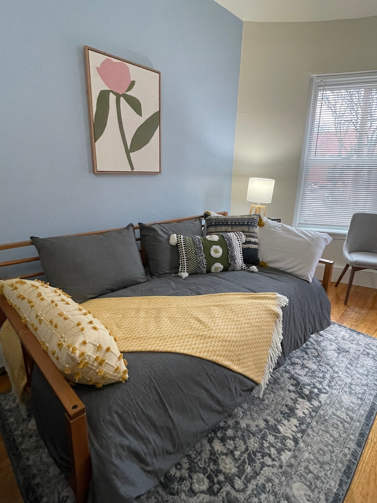 Árasán príobháideach, deataigh/saor ó pheataí ón 1ú urlár le rochtain neamhspleách do DHUINE AMHÁIN ar chúl theach an teaghlaigh amháin. Tá seomra folctha iomlán, cuisneoir, micreathonnán, déantóir caife + wifi san áireamh. Gach soláthar bunúsach curtha ar fáil. Páirceáil sa chabhsa. Mianaigh ó idirthuras MBTA lena n - áirítear ráille comaitéireachta. Rochtain ar an seomra níocháin le haghaidh cíosanna 7 n - oíche níos mó ná 7 n - oíche. Tá brón orainn, níl aon vapáil ann agus gan aon daoine a chaitheann tobac - fiú má chaitheann tú tobac taobh amuigh - toisc gur féidir boladh deataigh ort féin nó ar do chuid éadaí a fhágáil i do dhúiseacht sa seomra. Gan lasair oscailte.