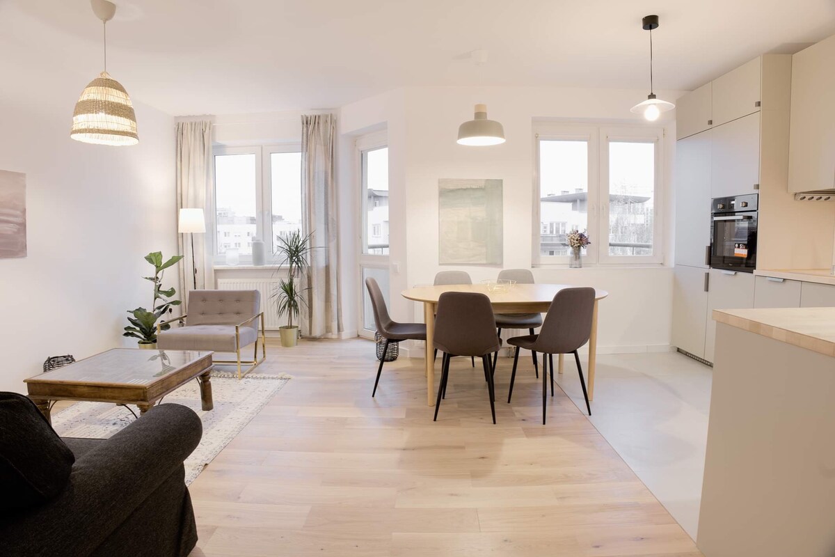 Téigh isteach i solas na gréine, socair, agus compord boutique. Tá an t - árasán 2 sheomra leapa urláir uachtair seo suite i bhfoirgneamh úrnua in Ursus síochánta - díreach 20 nóiméad ó lár chathair Vársá le SKM. Bí ag ól caife ar an mbalcóin, déan iniúchadh de ló, ansin déan gaoth le scannán i do phictiúrlann phríobháideach tí. Le taobh istigh dearthóir, meaisín níocháin, agus páirceáil shlán, cruthaítear gach mionsonra ar mhaithe le héascaíocht, stíl agus suaimhneas intinne. Cibé acu atá tú ag obair, ag ligean do scíth nó ag athcheangal, beidh tú ar do shuaimhneas nuair a thiocfaidh tú.