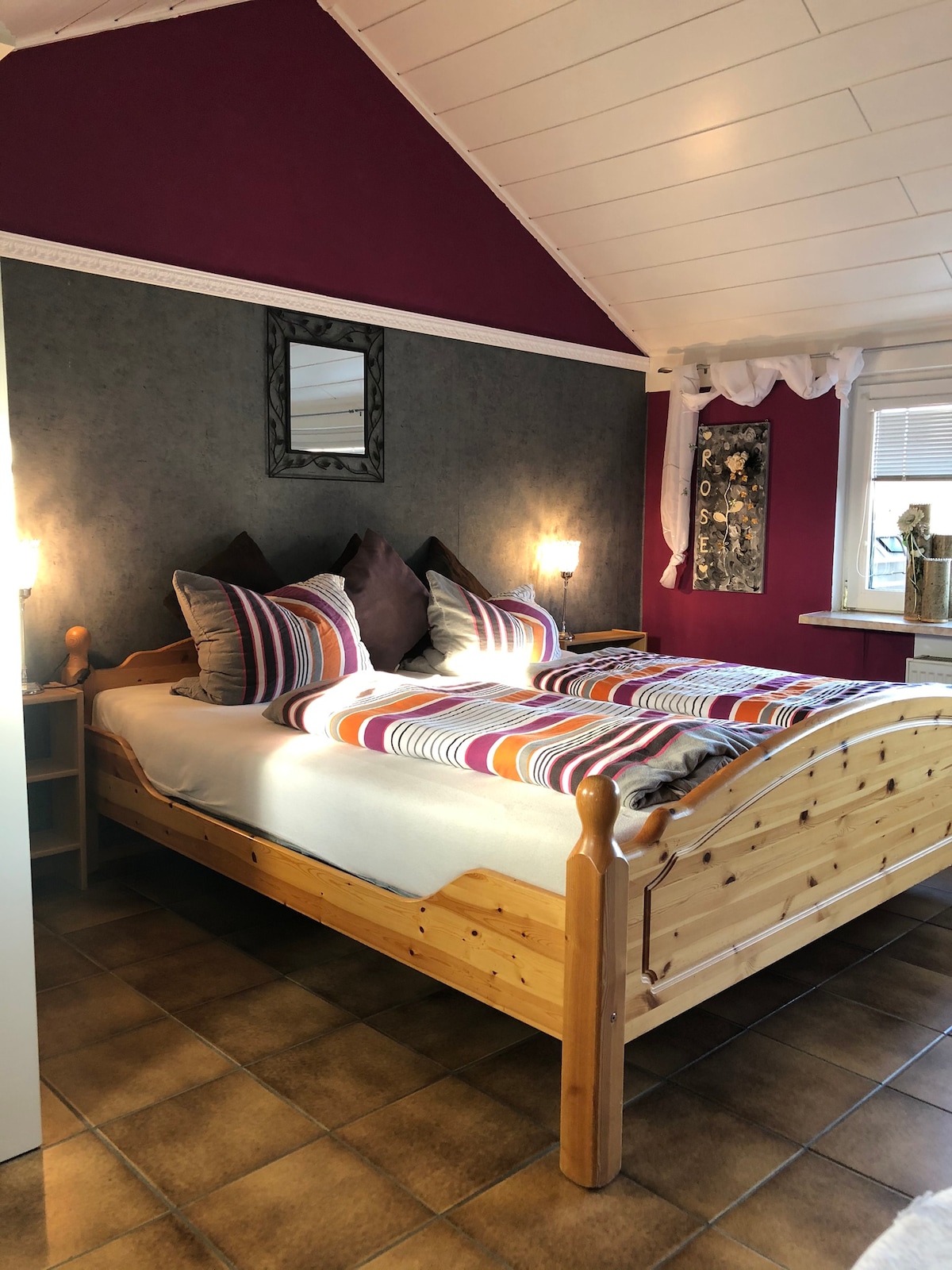 Die hochwertig ausgestattete Ferienwohnung mit bulthaup Küchenzeile und geseiften Naturholzdielen bietet mit einem Doppelbett auf der Schlafgalerie und einem Ausziehsofa im Wohn/Esszimmer bequem Platz für 4 Gäste. 2 Bodenmatratzen optional.