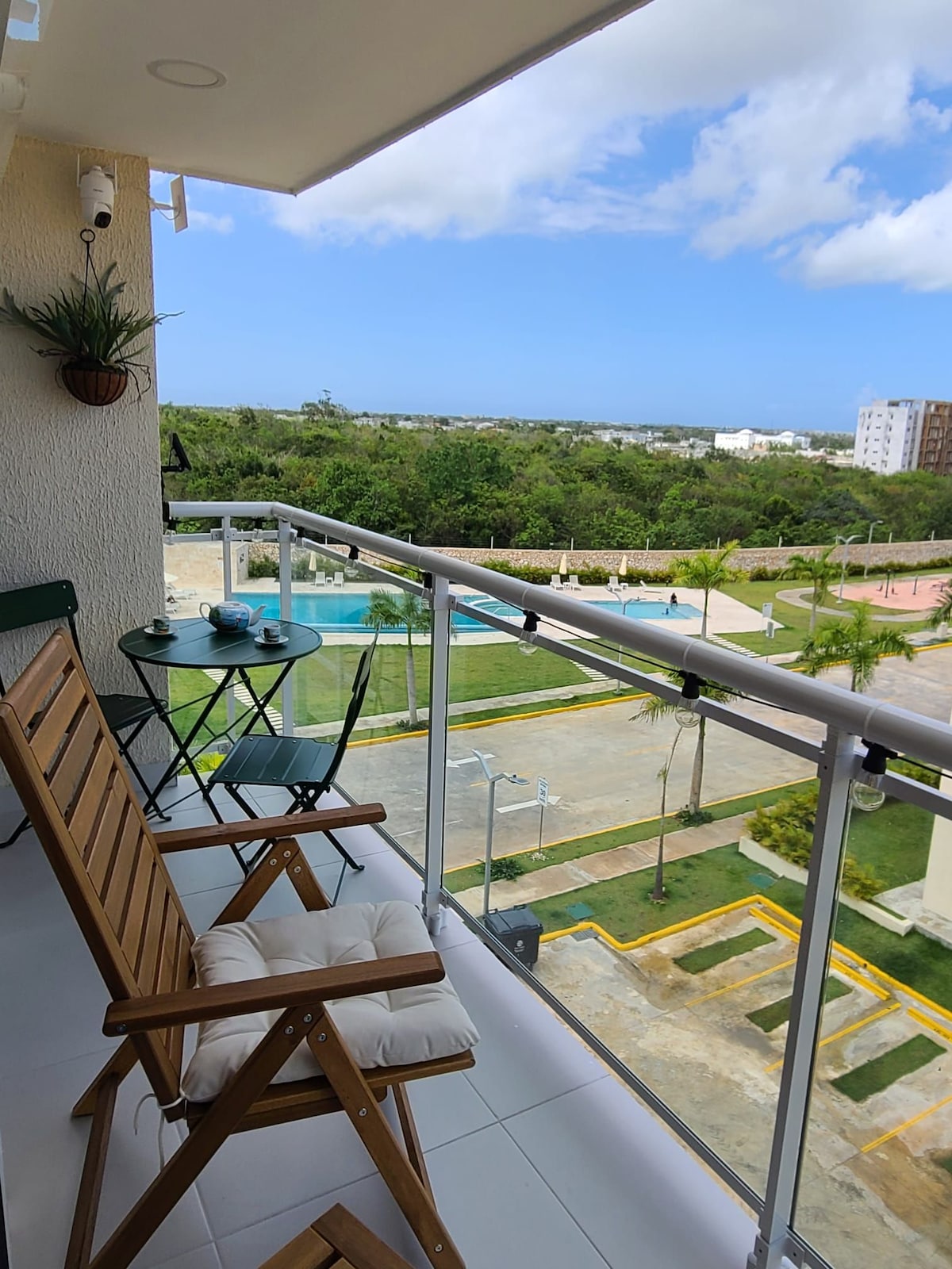 Téigh siar agus lig do scíth sa spás socair galánta seo ina bhfuil radharc álainn ar an linn snámha. Tá an t - árasán 1 leaba, 1 leaba leapa seo suite ar an gcúigiú hurlár, agus tá gach rud a theastaíonn uait le bheith ar do shuaimhneas, lena n - áirítear aerchóiriú i ngach seomra agus uisce te. Lonnaithe díreach 15 nóiméad ó Aerfort Punta Cana (PUJ), agus 5 nóiméad ó Coco bongo. Tá gach rud a theastaíonn uait agat díreach nóiméad ar shiúl. Is féidir leat do scíth a ligean sa linn snámha, árasán thar a bheith sábháilte, agus comharsanacht (slándáil 24/7) freisin. Tá leictreachas SAN ÁIREAMH 10 kwh in aghaidh na hoíche.