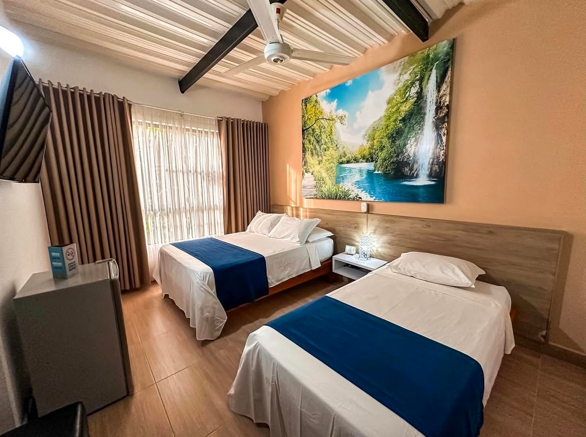 Is óstán nua - aimseartha compordach mé, atá oiriúnach duit chun taitneamh a bhaint as do laethanta saoire le suaimhneas intinne. Táimid lonnaithe bloc amháin ón bpríomhpháirc, 10 nóiméad go dtí Páirc Téama Hacienda Napoles, siúlóid 10 nóiméad go Santorini Colombiano agus 20 nóiméad go dtí Anaclann Dúlra Rio Claro áit ar féidir leat taitneamh a bhaint as a thírdhreach álainn agus spóirt fhoircneacha éagsúla a chleachtadh. Tá linn snámha sa lóistín, tá an ceann seo 3 bhloc ón óstán. Is féidir leat siúl go dtógfadh sé 5 nóiméad.