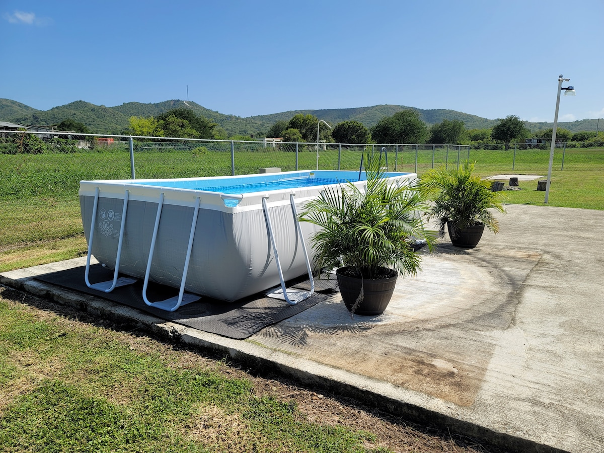 Saoire Phríobháideach Cabo Rojo le Linn Snámha agus Saoráidí den Scoth! Scoir agus lig do scíth inár n-óas príobháideach, atá suite go foirfe chun an chuid is fearr de thaobh thiar Pórtó Ríce a iniúchadh. Nascann an spás eisiach seo eachtraíocht an champálaí le compord villa sómasach, atá foirfe do 4 aoi atá ag lorg na gréine, na trá agus na príobháideachta. Buaicphointí Fanachta: Linn Snámha Phríobháideach Os Cionn Talún, Seomra Folctha Allamuigh Iomlán, Suíomh Dochloíte, Lota Príobháideach, Oiriúnach do Bhád agus Sciála Scaird agus Parthas Rothaíocht Sléibhe.
