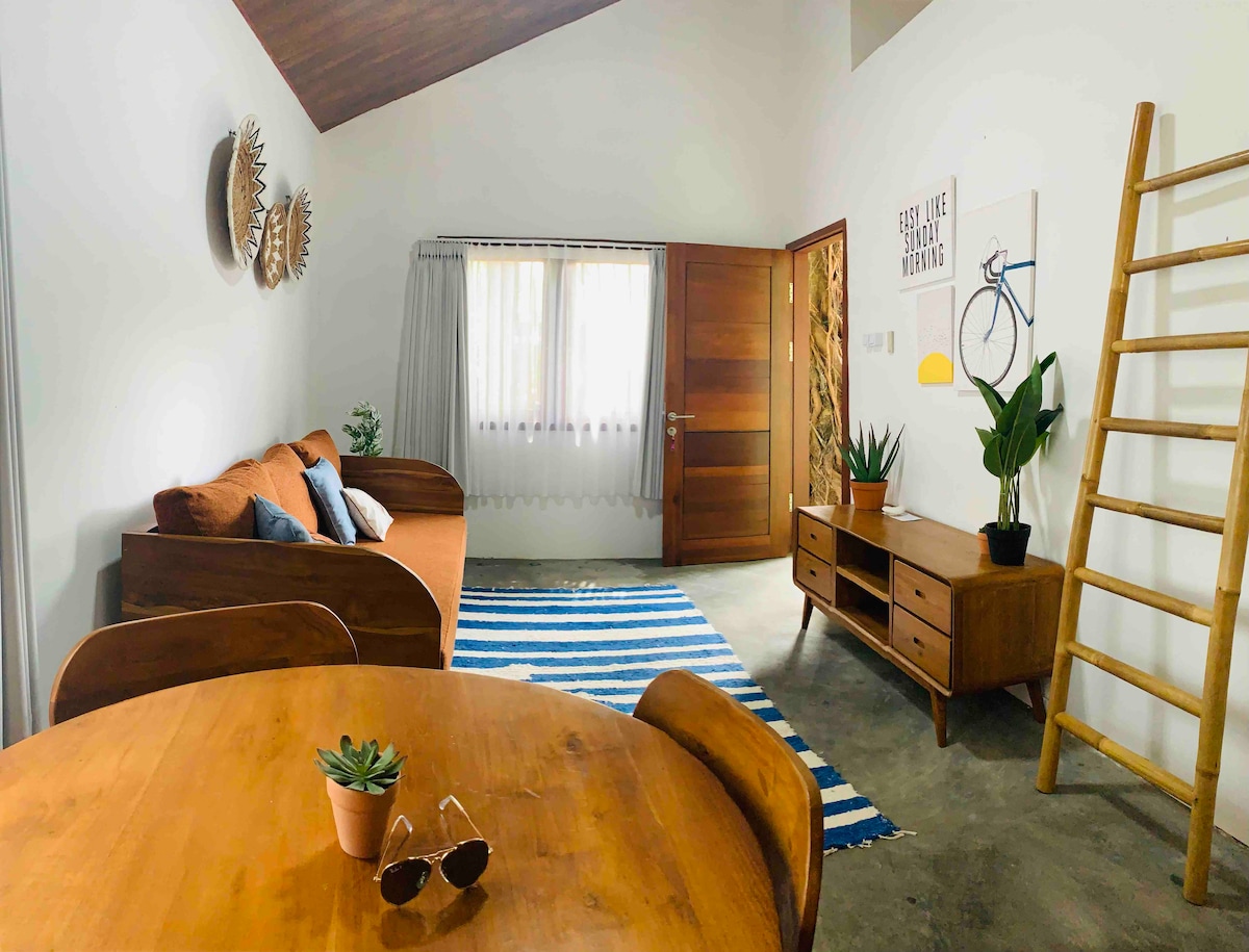 Tugann SUNDAY Villa éalú trópaiceach le hailtireacht ghalánta laistigh den taobh amuigh, rud a ligeann duit glacadh go hiomlán leis an dúlra. Lig do scíth sa ghairdín príobháideach nó i do linn snámha úrnua. Tá seomraí leapa fairsinge sa villa ina bhfuil síleálacha arda tuí, AC, gaothráin agus seomraí folctha ensuite. Sa phríomhsheomra leapa tá leaba theolaí lae agus folcadán lasmuigh, foirfe chun scíth a ligean faoi chrainn thrópaiceacha. Neadaithe in surftown Kuta, is seod neamhchoitianta é SUNDAY Villa. Timpeallaithe ag pailmeacha, tá sé siúlóid ghearr ón lár agus ón trá.