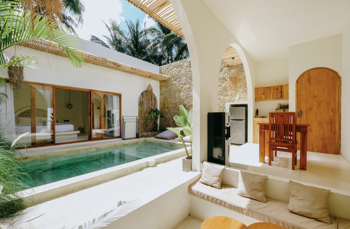 Do thearmann príobháideach sa Mheánmhuir in Lombok. Villa 2 sheomra leapa go hiomlán príobháideach le bealach isteach príobháideach, 10 nóiméad ar a mhéad ó Kuta Central. Tá seomra folctha en-suite le cith i ngach seomra leapa, chomh maith le linn snámha phríobháideach, cistin agus seomra suí. Timpeallaithe ag fásra méith agus atmaisféar sráidbhaile—foirfe do lánúineacha, do theaghlaigh nó do chairde.