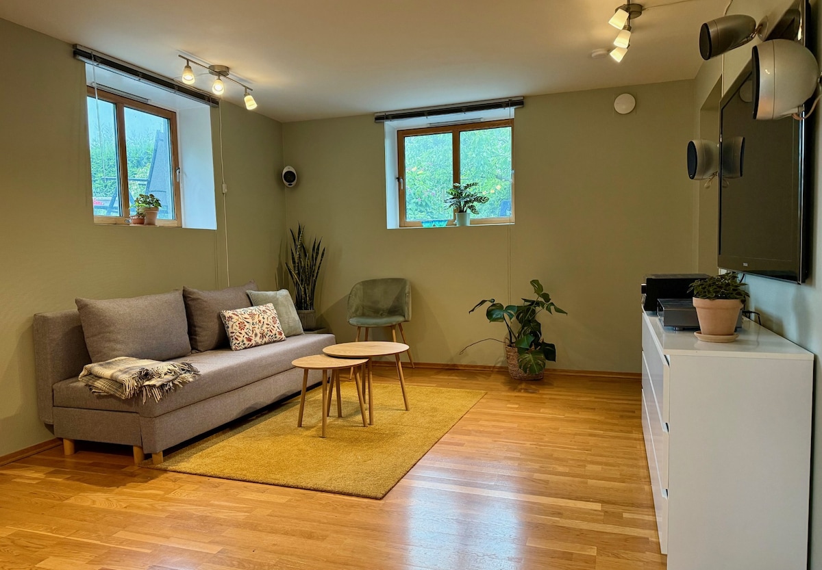 San áit seo is féidir le do theaghlach fanacht gar do Stavanger. Pointe tosaigh foirfe do thuras chuig Carraig Pulpit, Kjerag, agus Lysefjorden. Níl ach 25 nóiméad sa charr go Stavanger agus 8 nóiméad sa charr go páirceáil Preikestolen. Go lár chathair Jørpeland tá sé achar siúil. Tá cistin atá feistithe go maith san árasán. Sa seomra suí tá 2 leaba thoilg, seomra do cheathrar. Trí sheomra leapa le leaba dhúbailte i ngach seomra. Tá leaba linbh ann freisin. Seomra folctha nua - aimseartha Is féidir uibheacha úra agus cuddle a thabhairt isteach le coiníní. Trealamh súgartha sa ghairdín