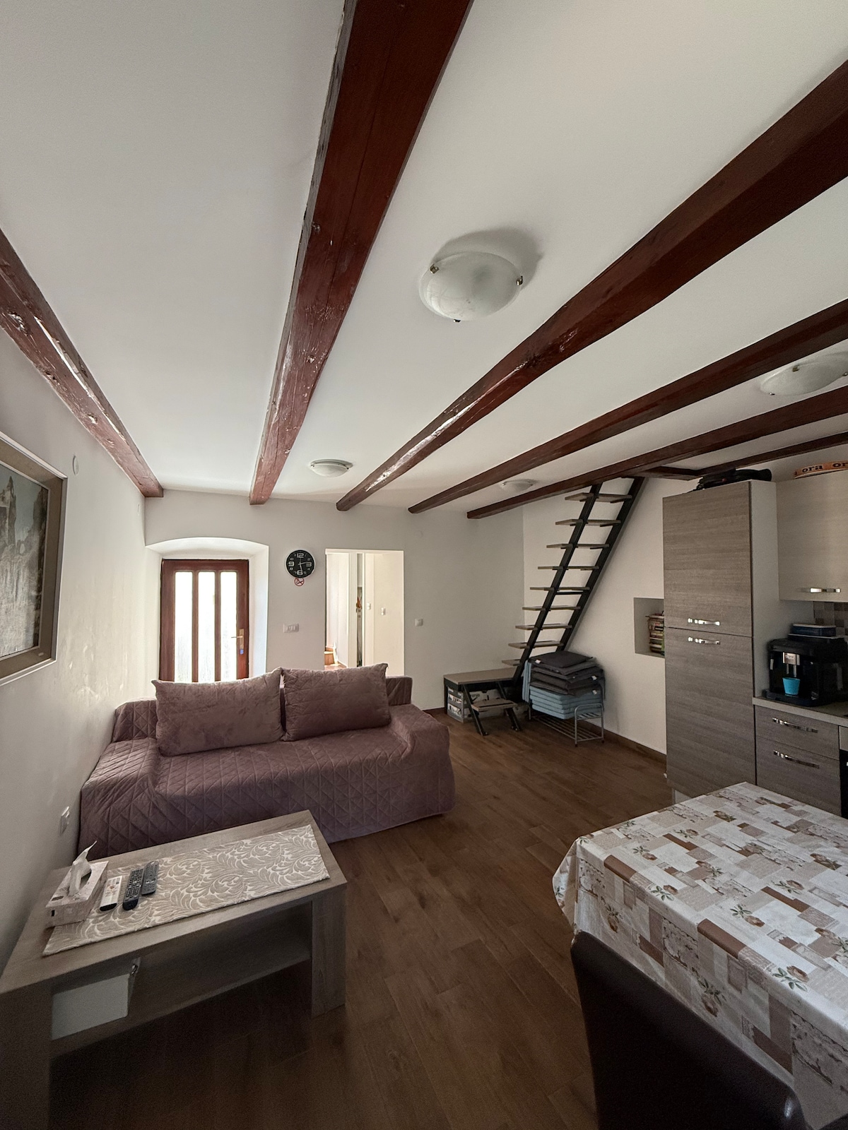 Tá an áit an - ghar do thaobh na farraige i sean - lár an bhaile in aice le muiríne Punat freisin. Tá an áit an - chompordach, le spás úr athnuaite le stíl agus maisiúcháin bharántúla, suíomh álainn, ardán atá iontach le haghaidh deoch tráthnóna agus caife maidine. Chomh maith leis sin tá rothair le ligean ar cíos san áit, cé go bhfuil gach rud an - ghar don árasán. Páirceáil saor in aisce le linn an fhanachta san áireamh. Áit rómánsúil agus beidh sé oiriúnach do lánúineacha, lánúineacha le leanbh, eachtránaithe...