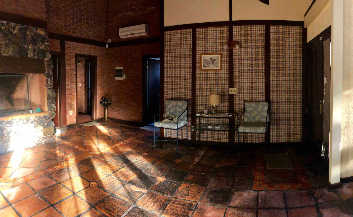 Teach ina bhfuil go leor duilliúr agus linn snámha théite.