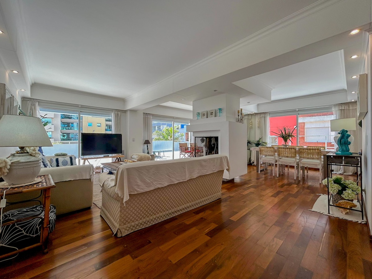 Árasán galánta fairsing 3 sheomra leapa, 3 sheomra folctha ar an leithinis (ceann en suite) do 6 dhuine ag a bhfuil saoráidí i gceann de na háiteanna is fearr in Punta del Este. Seasann a bhalcóin mhór os a chomhair ag breathnú amach ar an bhfarraige agus ar an Rambla le cathaoireacha agus bord amach. Tá bealach amach go dtí an boulevard ann chun siúl feadh an chósta agus na Dedos a bhaint amach. Suíomh faoi phribhléid 200 m ó Shráid Gorlero, 300 m ón Calle 20 sómasach, in aice le muiríne agus limistéar na mbialann, na gcaiféanna agus na siopaí