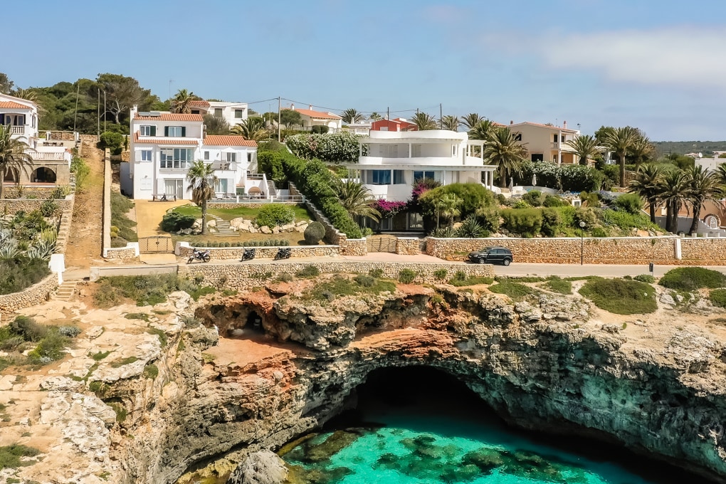 Teach i Menorca ag breathnú amach ar an bhfarraige (San Colomban)