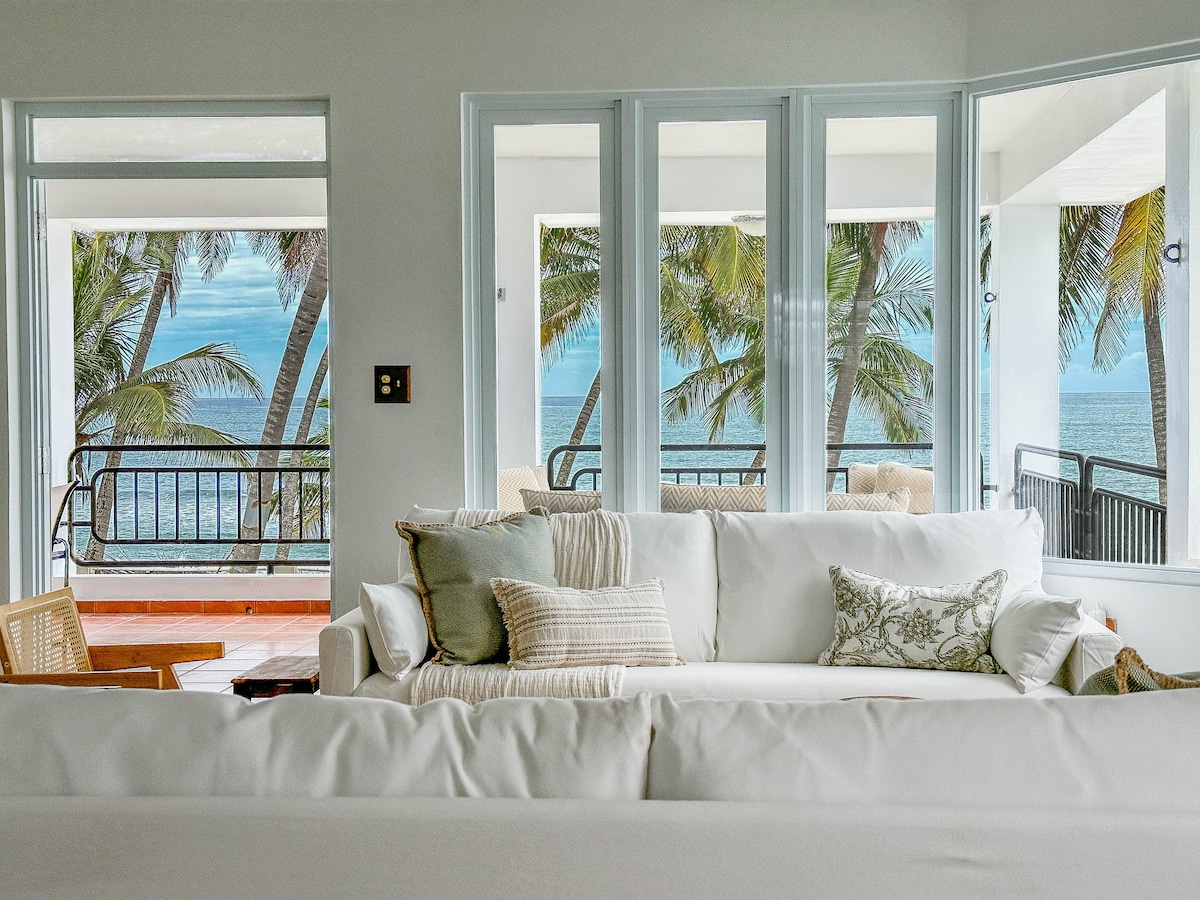 Éalaigh agus athluchtaigh inár óstan i stíl boho trópaiceach cois trá in Rincón, díreach 50 céim ón ngaineamh! Tá radhairc aigéin, maisiúchán galánta, agus dhá spás oibre iargúlta tiomnaithe le feiceáil sa teach 4BR seo (3 Sheomra Leapa + 1 oifig), 3.5 seomra folctha trí leibhéal. Bain sult as compord an bhaile le snáithíní trá sa Mhuir Chairib, Wi - Fi tapa, agus rochtain insiúlta ar shurfáil, ar bhia agus eile. Foirfe do theaghlaigh, do ghrúpaí beaga, nó do thaistealaithe atá ag obair.