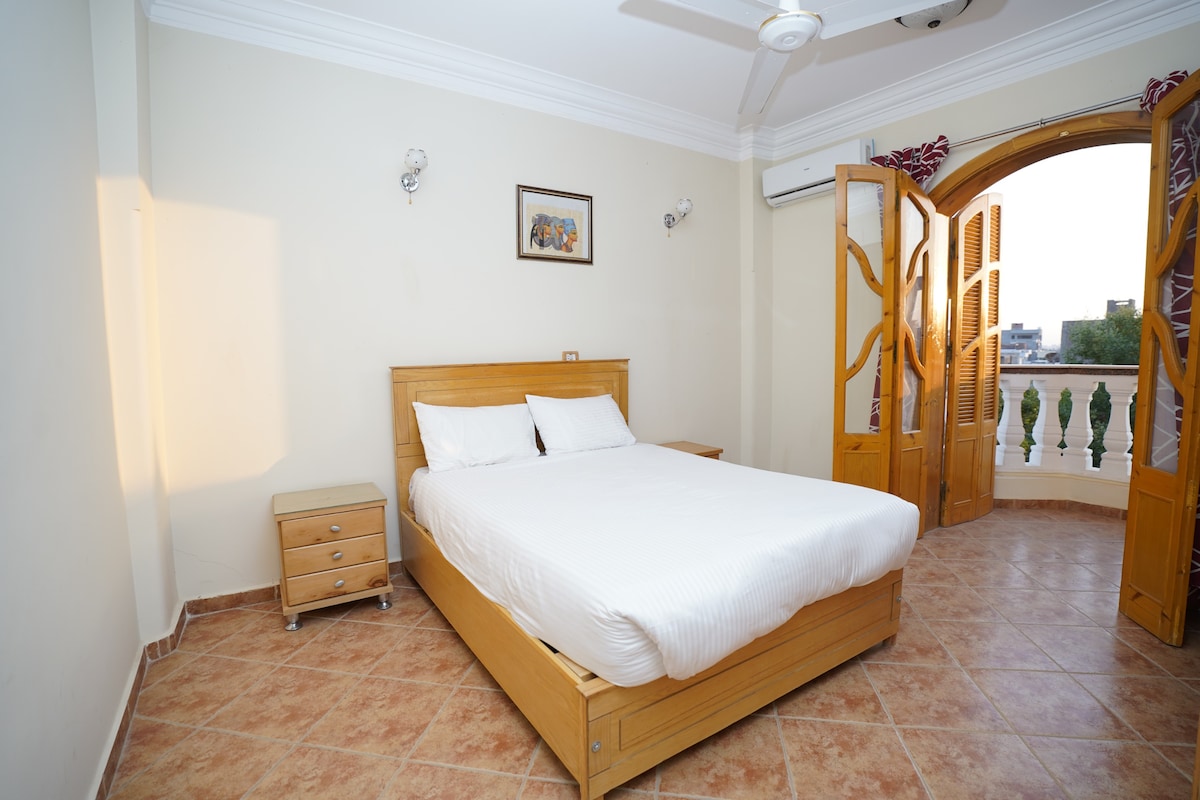Déan iniúchadh ar dhraíocht Árasán Stiúideo Sunset, atá suite go huathúil díreach ar bhruach thiar Chlár na Níle dár rogha eisiach turas chuig séadchomharthaí ársa a bhfuil cáil dhomhanda orthu in Luxor. Níl Gleann na Ríthe, Teampall Luxor, Teampall Karnak, Teampall Hatshepsut ach 10 nóiméad sa charr uainn! Bain sult as cuairt speisialta nuair a fhanann tú san áit uathúil seo. tá suíomh maith ag an réadmhaoin in aice le siopaí agus bialann is féidir leat a fháil béal dorais. stiúideo le leaba de mhéid banríona in Árasán Stiúideo Sunset.
