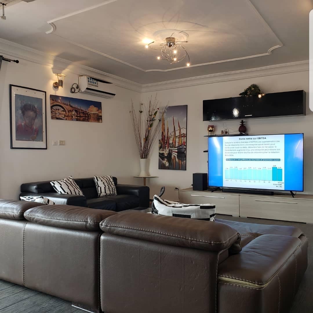 Árasán Chic, in áit chónaithe úrnua🏠 atá suite nlle routetongolo; árasáin atá feistithe le maisiú comhaimseartha agus saoráidí leathana: - gineadóir (ó 7/15/24) - Chateau d'Eau - 1 seomra leapa, seomra suí, seomra folctha,cistin - aerchóiriú - uisce te - Seirbhís seomraí - soilsiú feabhsaithe - Seiceáil aitheantais - feighlí lae agus oíche - CCTV - Wi - Fi ardchaighdeáin - Páirceáil laistigh - Sat cainéil teilifíse - teacht ar ár n - eolas ar an leathanach facebk "Résidence GIGI home"
