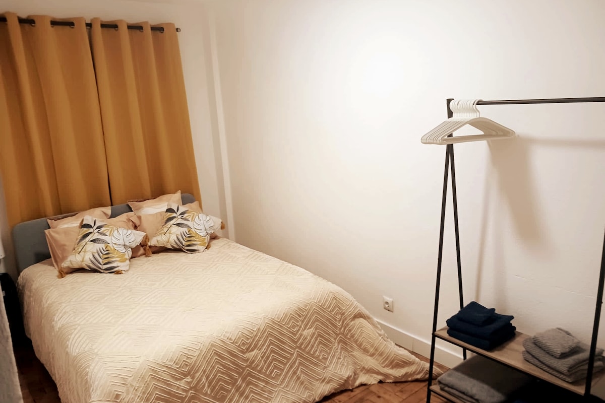 Árasán grianmhar, simplí agus feistithe go hiomlán. Seomra teolaí, seomra suí mór. Bíodh bricfeasta agat ar an mbalcóin a ghabhann le héirí na gréine ar na haillte. Siúlóid 5 nóiméad ón trá. Bhuel, suite i lár an chósta. 20 nóiméad sa charr ó Liospóin Lóistín Áitiúil le clárú uimh. 29259/AL den Chlárlann Náisiúnta Turasóireachta - Turismo de Portugal