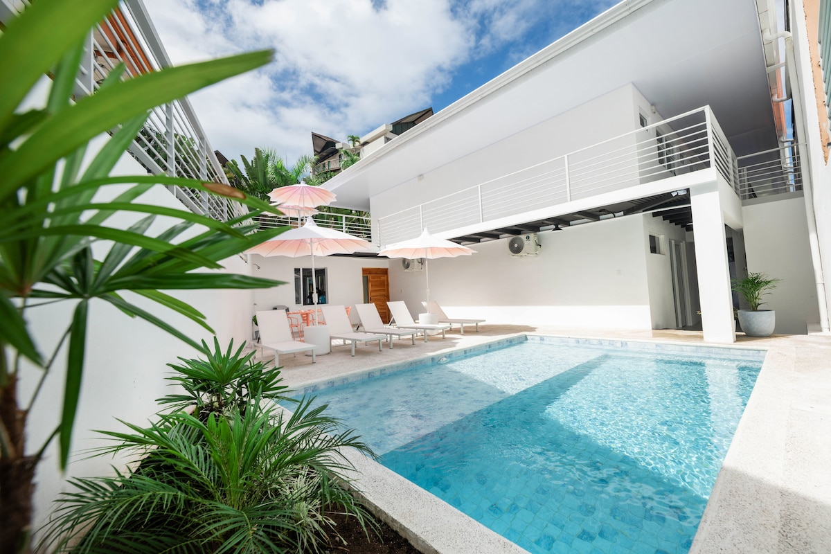 Key Features of Hotel Por Que No?: 🌟 10 minute walk to Marino Ballena National Park (Whale Tail Beach) 🌟 Private room and bathroom 🌟 2 double beds 🌟 Pool with lounge chairs (shared) 🌟 Fully stocked outdoor kitchen (shared) 🌟 Air Conditioning 🌟 Free gated parking on premises 🌟 Fast Internet 🌟 Washer + Dryer (small fee) The hotel consists of 5 separate rooms each with a private bathroom.